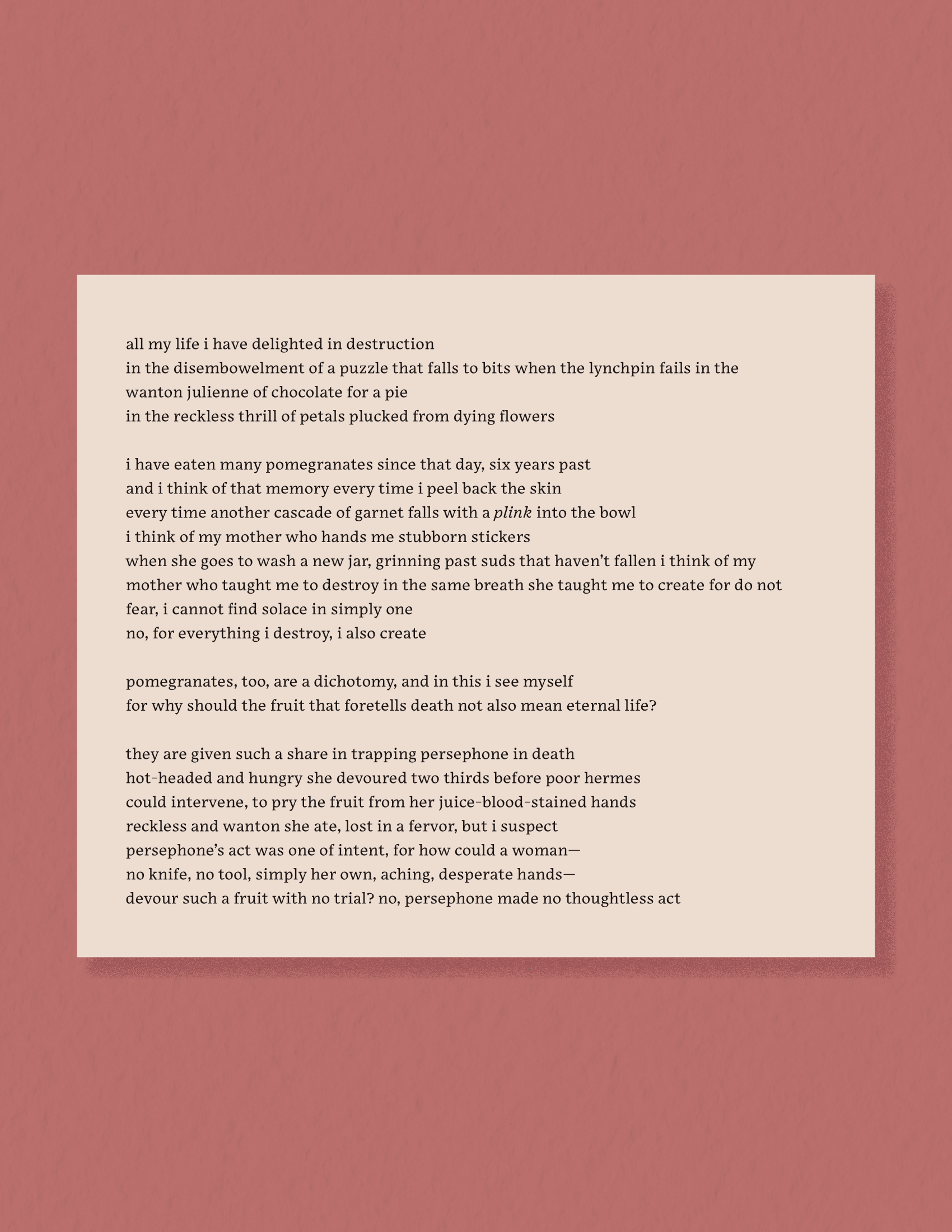 During the Fall 2025 semester, I served on the design team for JMU’s Iris Magazine, where I designed three editorial spreads showcasing student-submitted visual art and literary work.