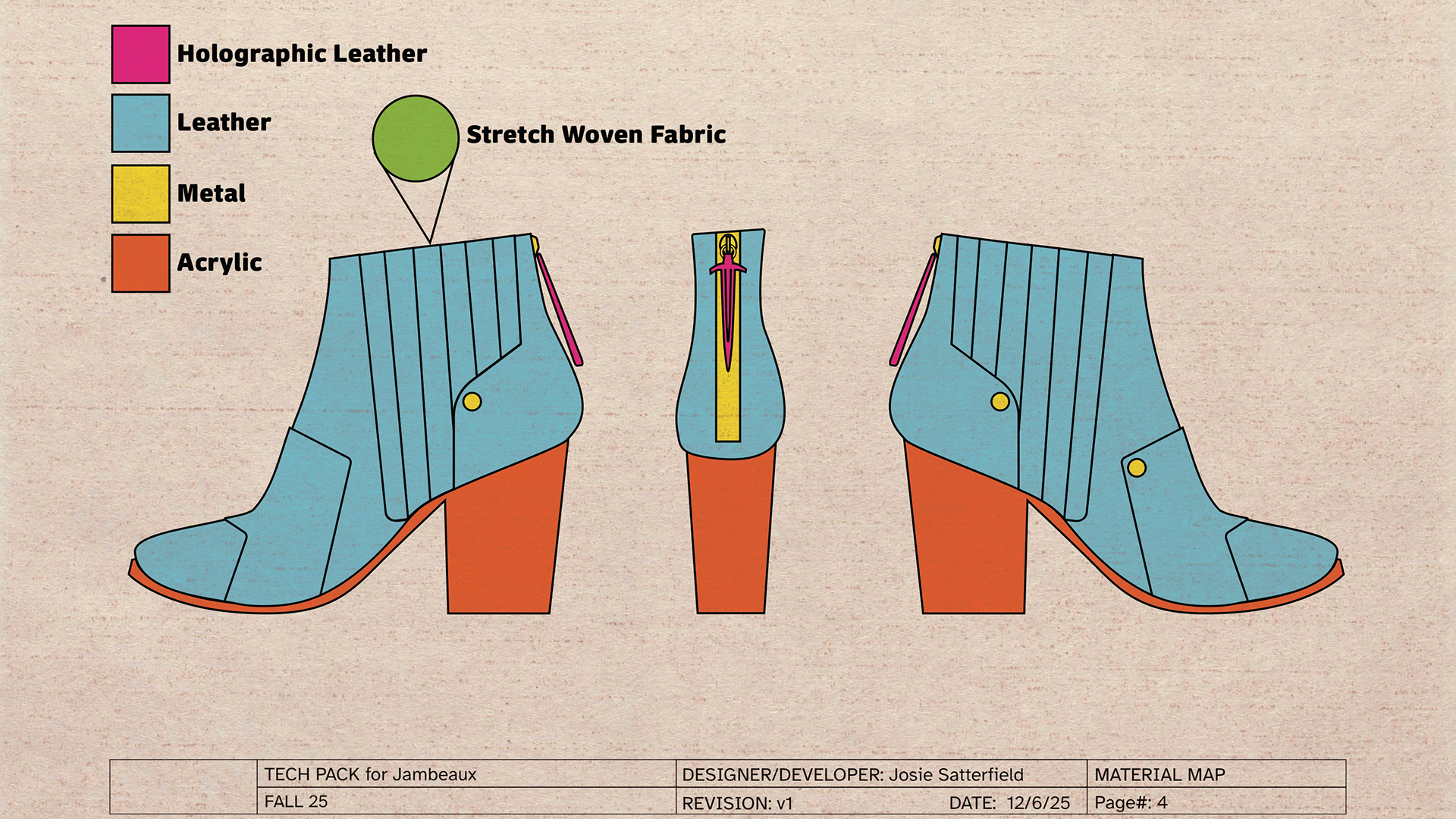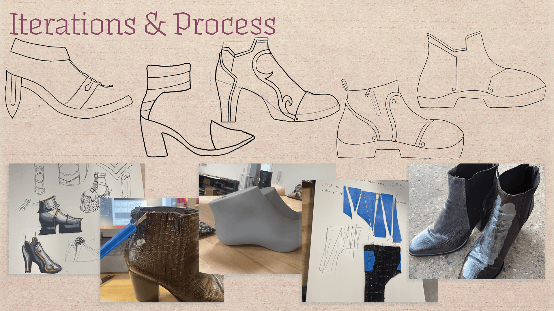 I thrifted brown heeled boots, deconstructed them, hand-painted the remaining leather, and attached new ECCO leather.